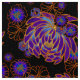 Tecido de padrões japoneses com crisântemos e mães em roxo profundo