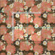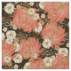 Tecido de padrão japonês com crisântemos e mães em castanho escuro