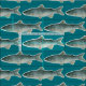 Um tecido com peixes de lago de água doce ilustrado com aquarela num fundo azul escuro de turquesa verde. Você pode mudar a cor de fundo para o ajustado das suas necessidades.