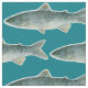 Tecido Lago Peixe Pesca Dark Turquoise Blue Watercolor