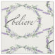 Uma design romântica e elegante com a palavra "acreditar" enquadrada por eucalipto e lavanda pintada em aquarela.