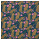 Leopardos cercados por uma luxuosa folhagem da selva e flores roxas e rosa vibrantes.