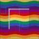 Cores arco-íris de linha ondulada de vermelho, roxo, violeta, azul, laranja, amarelo e verde sobre um fundo com padrão sutil.