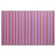 Este design tem um padrão listrado com cores como vermelho, roxo e branco.