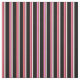 Este design apresenta um padrão de listras vermelho, violeta, castanho, branco e preto.