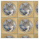 Bela Cinza, retrato de Wolf, rodeado de bronze / ouro / cor marrom e enquadrado por linhas verdes profundas/