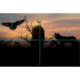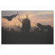 Dois lobos e um sobrevoo em uma paisagem silenciada e uma nuvem de sol.
