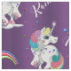 Um tecido de unicórnio roxo que seria excelente para roupas de crianças, ou para decorar seus quartos com elas. O padrão apresenta unicórnios coloridos com mansos e caudas arco-íris cercados por estrelas e arco-íris, com as palavras 'Arcos-íris' e 'Magia' ao seu redor. Este tecido roxo lindo também seria um recurso excelente para o artesanato.