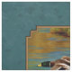 Patos-reais masculinos e femininos em voo sobre uma lagoa de ouro, água ondulando para refletir as cores da folhagem de outono de fundo brilhando à luz do sol. Acentuado com um fundo verde-lacado correspondente.