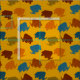 Tecido Mamutes Dourados, Azuis, Laranja-Burros, Patterado