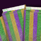 Mardi Gras cores de roxo, ouro e verde em uma faixa horizontal texturizada.