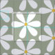 Tecido Margarida branca com centros amarelos em cinzas mu