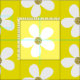 Um bonito design de margarida, branco, sobre fundo amarelo, com um elegante centro de ouro. De Designs Finos de Chessie.