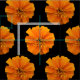 Um padrão de flores laranja-douradas sobre fundo preto. O padrão foi criado com uma foto aproximada de uma flor de marigold solteiro que foi isolada do fundo.