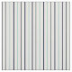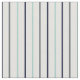 Este tecido apresenta um padrão listrado com faixas de marinho azul, azul aqua claro e cinzas de carvão contra um fundo branco de casca de ovo para uma legal paleta de cor de verão.