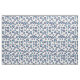 Tecido branco nítido com um padrão circular de marinho mediterrânico azul e mau aqua