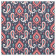 Tecido Marinho Turquoise e Coral Ikat Paisley