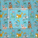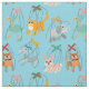 Este tecido fofo apresenta um padrão de marionetas animais fofinhos contra um fundo azul claro. Há uma marionete de gatos, uma marionete de cães, uma marionete de cabras, uma marionete de pássaros, uma marionete de coelhos e uma marionete de elefantes.
