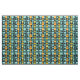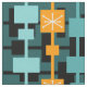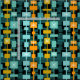 Um padrão geométrico contemporâneo simples, mas colorido, com quadrados, retângulos e linhas. Turquesa, amarela e laranja contra um fundo verde teal.