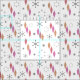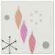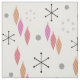 Uma era atômica retro design com um tema de Natal. Apresenta flocos de neve prateada e ornamentos de árvores de Natal vermelhos, laranja e roxas.