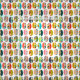 Este tecido tem um design moderno do século médio de metades ovais, algumas sólidas e algumas listradas, num campo de branco.