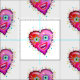 MEU CORAÇÃO VAI SE ESPANTAR NO Tecido de Quilting & Sewing Um estilo de arte contemporânea sorridente emoji como um rosto emocional vermelho em forma de coração, nas cores brilhantes e coloridas do Namorados, vermelho, pinks, magentas e roxas, acentuado com outras cores complementares.