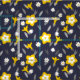 Flores retrorreflectoras e folhas em branco, cinza e amarelo ocre sobre fundo azul-da-noite. A cor de fundo pode ser alterada.