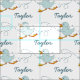 Diversão de pássaros voando e tecido gráfico de nomes. Ideal para fazer uma criação de costura muito especial para Páscoas. Patos claros e claros, pálidos, com o nome do chalé. Personalize com seu próprio nome, lê atualmente Taylor. Ilustrada e projetada exclusivamente por Sarah Trett.