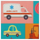 Tecido de padrões de veículos de transporte para rapazes que amam veículos como carros, tratores, caminhões-bombeiros, jipes, carros da polícia, ambulância, Decker duplo, carrinha de Sorvete, balão de ar quente, patinete, bicicleta, motociclo. Entre em contato comigo para obter cores ou qualquer outra personalização.
