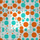 Uma plethora de círculos laranja e azul-claro numa composição moderna do século médio mesmerizante. Padrões circulares de inspiração retroativa.