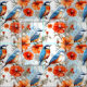 Tecido Moinhos de fada e flores de papoila laranja com av