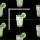Um copo de coquetel mojito com fatia de limão e decoração de menta. Um padrão perfeito. Cor de fundo personalizada.