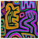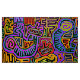 Ritual de Peyote, Ritual de Pássaro, símbolos shaman, azul amarelo vermelho, laranja azul marinho, decoração boho, virginia vivier, arte popular vagabundo, flechas, , arte independente, inspirado em mola, mola indígena Kuna.
