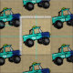 Rodas grandes, aqua e caminhão monstro azul design sobre uma mistura natural de tons castanhos e bronzeados.