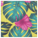 Tecido Monstera Leaves e Hibiscus, Rosa Teal em Amarelo