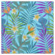 Folhas tropicais coloridas de palmeiras, monstera, flores de plumeria e aves do paraíso sobre fundo azul-céu. Você pode alterar a cor de fundo clicando no botão "Personalizar!". Por favor, anote! Aqui você também pode mudar o tamanho do azulejo para ajustar o tamanho de um desenho necessário.