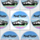 Uma ilustração de arte em linhas brancas e pretas do Monte Rainier, e do vale de Jackson Hole. O lago e o céu pintados em aquarelas azuis criam uma dramática paisagem de montanha.