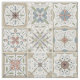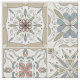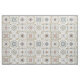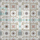 Tecido com uma série de nove (9) azulejos diferentes ao estilo espanhol, em forma de mosaico de cor neutra.