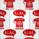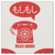 Uma ilustração retrógrada de um telefone com uma discagem. Este telefone temático da década de 70 ou anos 80 tem um visual antigo com um cabo e discagem. O texto diz Moshi Moshi. Uma leitura de telefone comum no Japão. O design tem Caracteres Kanji Japoneses.