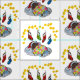 Um camundongo giro dormindo e esperando Papais noeis virem com meias e luzes pintadas em sumie com tinta sumi em papel de arroz.
