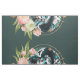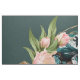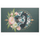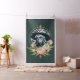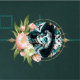 Mulher espantosa adorada com uma espantosa maquiagem do crânio de açúcar. As cores brilhantes e os intrincados padrões contam histórias de vida e morte, dando a ela um olhar alegre, mas respeitoso, que é perfeito para Día de los Muertos. Seu cabelo longo e fluente brilha uma brilhante turquesa que flui sobre seus ombros como uma cachoeira de cor. Ele pega a luz e melhora o humor festivo do design. O fundo brilha em azuis profundos e verdes, lembrando um céu noturno, enquanto flores delicadas, rosa e brancas, dançam ao seu redor. Estes sotaques florais não só adicionam cor, como também simbolizam o amor e a memória do falecido.