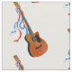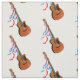Uma ilustração de um violão acústico com fitas vermelhas, brancas e azuis. Um design patriótico, inspirado pela música americana. O violão é pintado em tons de madeira realistas e quentes.