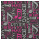 Dançar é sua paixão? Este tecido legal com uma palavra design de nuvem diz tudo. Algumas das palavras, intercaladas com notas musicais, são: respirar, ao vivo, amor, dança, ritmo e nascer para dançar. Esta versão apresenta tons de rosa, cinza e branco para qualquer fundo colorido escuro de sua escolha. Outra versão com rosa e preto está disponível para cores de fundo mais leves. Procure ID277 para ver opções de cores adicionais e produtos correspondentes a este design.
