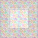Esse tecido tem um design geométrico de três ovais em cores neonatais espalhados em um campo de branco.