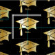 Este design de boné de formatura de gradiente de tom dourado está pronto para você personalizar com seu ano de aula em preto e formando favorito em tom dourado e tudo em um fundo preto (ou você pode mudar de cor). Ilustração original e design por Designs Holiday Hearts (todos os direitos reservados).