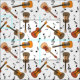 Um monte de guitarras e notas de música negra é um design divertido para músicos, professores de música e estudantes.