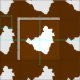 O mapa brasileiro apresenta um traçado branco com cores contrastantes na paleta Festiva Brasil de Emporio Moffa inspirada na bandeira nacional, no carnaval e na indústria cafeeira.