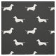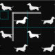 Tecido modelado original para amantes do Dachshund. Disponível em muitos estilos do tecido, este teste padrão bonito caracteriza silhuetas brancas de cabelos curtos do cão do wiener no preto. O fundo preto pode ser mudado usando ferramentas fáceis da personalização de Zazzle. Um teste padrão para seu projeto sewing seguinte, excelente do divertimento para criar presentes handmade originais para amantes do dachsie. Mundo do Doodle de Jenn da visita para ainda mais presentes do tecido e do amante dos animais da raça do cão que incluem silhuetas de cabelos compridos e wirehaired do Dachshund.
