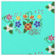 Tecido Ojibwe Floral Design com Fundo Turquesa