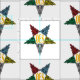 Tecido com um design oriental bonito e original da estrela.